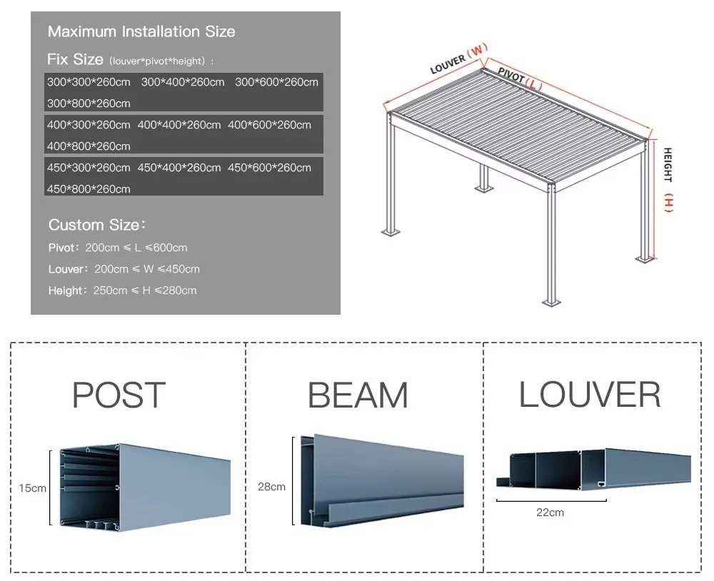 - Koko: 3x3m, 3x4m, 4x4m, 6x4m tai mukautettu